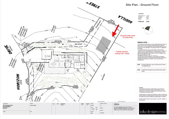 planning regulations, and engineering input. Dimensions, levels, and siting shown