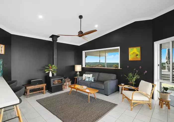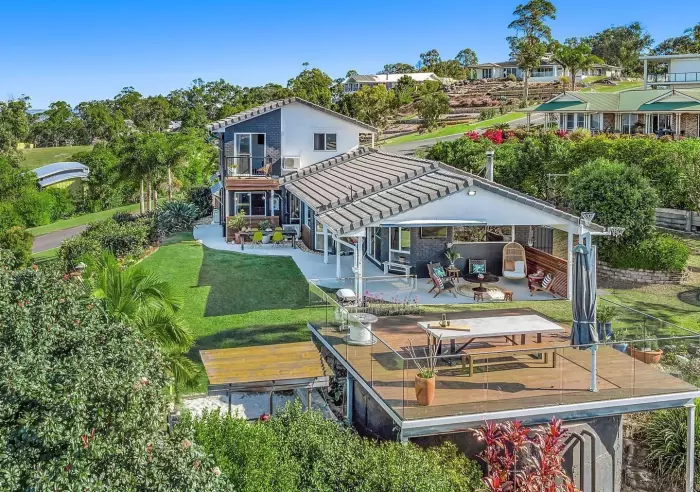 * Large outdoor deck and rustic seated bar overlooking stunning hinterland views