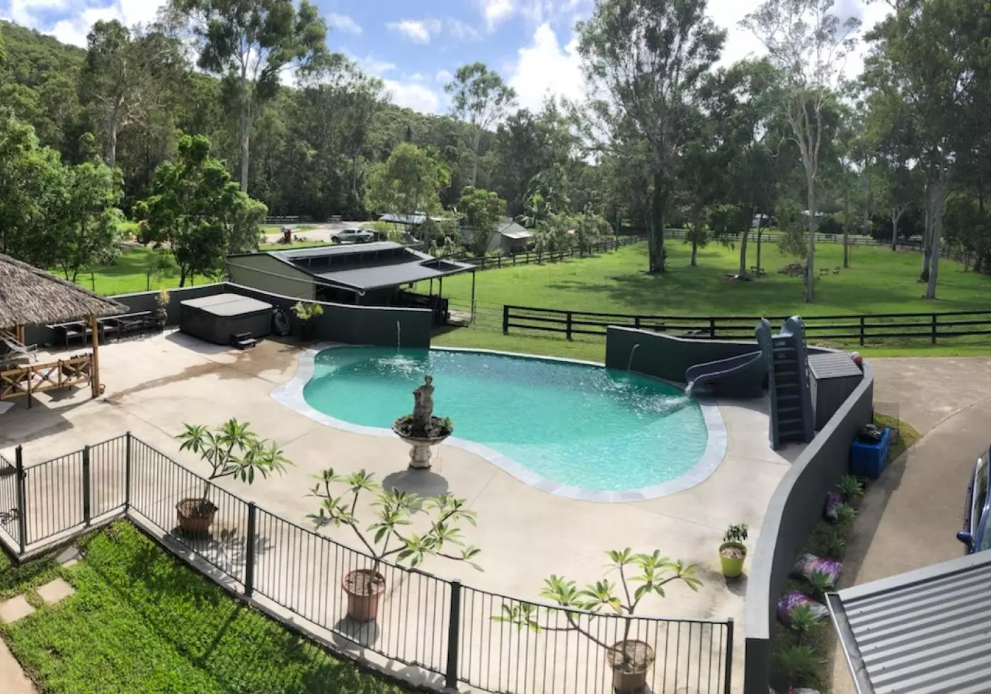 Sit on the front verandah which has a full view of the large oasis in-ground fresh water swimming pool and Bali hut entertainment area and watch the colourful bird life fly in that come to visit you also local kangaroos