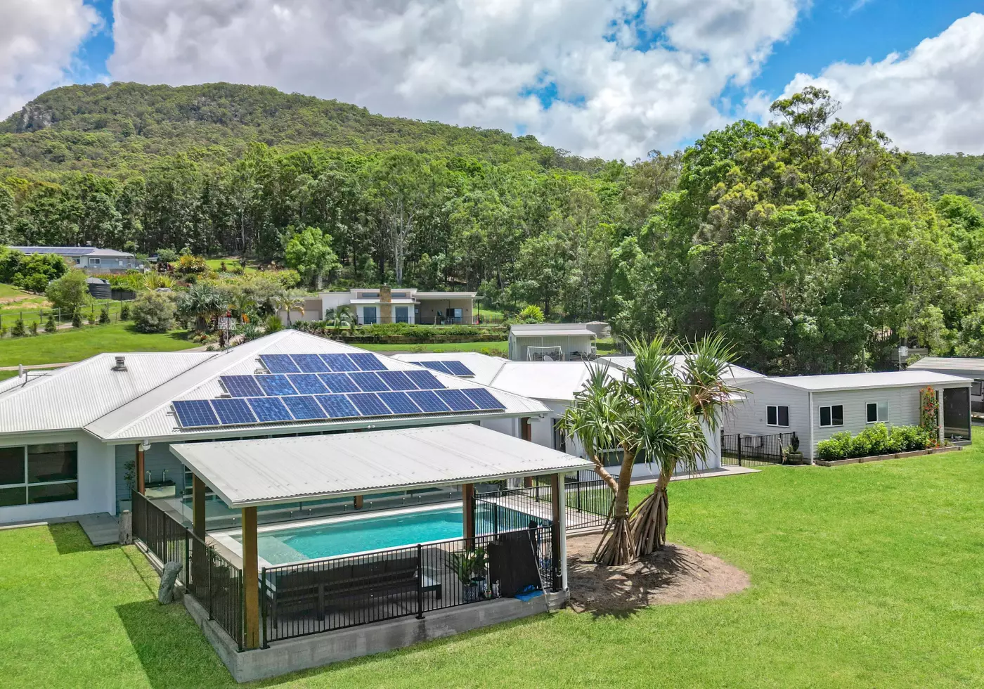 10) Fully fenced around all boundaries, entry front security gate, flat large grassed area, small creek, manicured gardens, sandstone retaining walls, boulder rock walls, 3 Rainwater tanks (67,000litres) concrete surrounding paths, 6.6kw Solar- Septic system with grey water and much more!