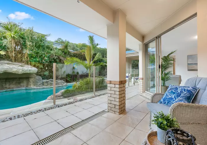 * 2 Entertainment areas to sit and unwind enjoy all year round with family & guests pour your favorite beverage make a cocktail and enjoy those flowing sea breezes extra toilet, plus a TV output, perfect for movie nights in the pool, this area backs onto a bush reserve