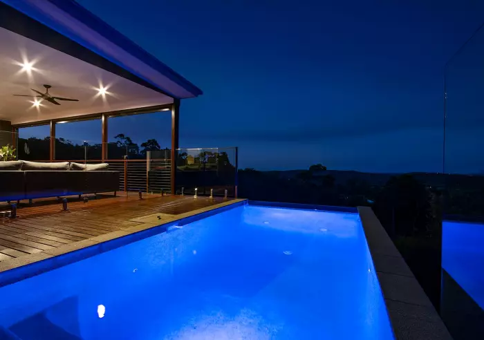 As you venture beyond, discover a private oasis featuring an in-ground swimming pool surrounded by meticulously landscaped grounds with visiting kangaroos and singing birdlife. The poolside area offers a serene retreat, perfect for basking in the sun or taking a refreshing dip on warm days.