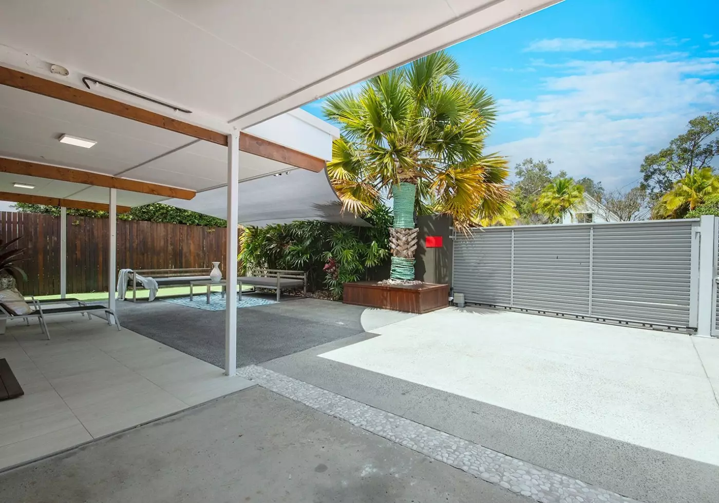 A private backyard oasis a fully fenced for the kids, ideal for weekend barbecues and summer gatherings