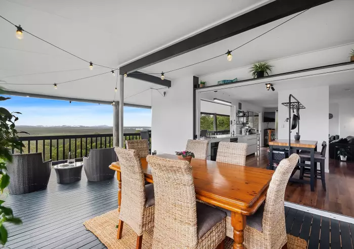 - Living & Dining room with 2 sliding glass doors leading to large wrap undercover verandah front & side decking