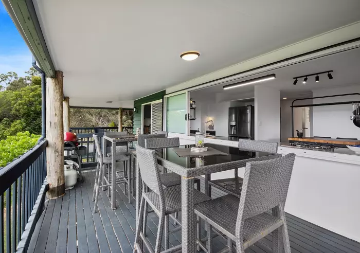 Set back from the road, this immaculate two storey, single living pole house has been recently renovated, the residence features amazing panoramic ocean & hinterland views and a bush outlook from the rear. Ideally located 3 minutes’ drive to school, an easy-care native garden ready and waiting just for you to take over this only 1 owner property of 30 years.