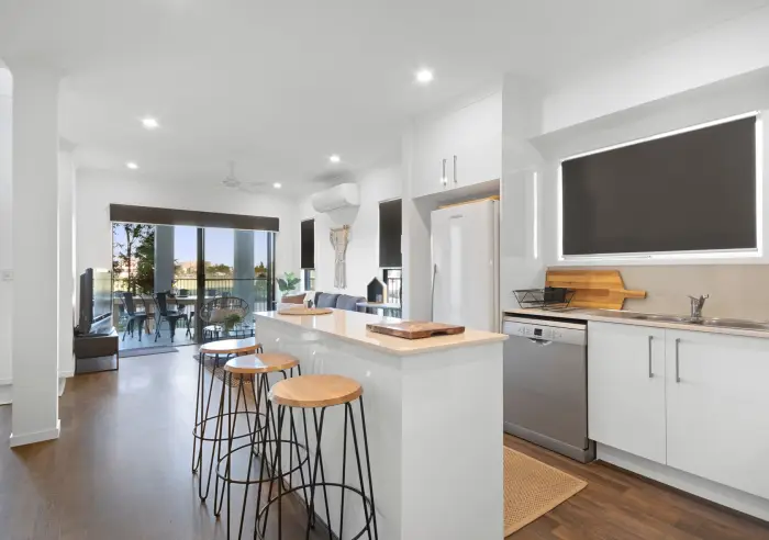 The open plan living, dining and kitchen opens the space for you including quality kitchen appliances, offering easy living.