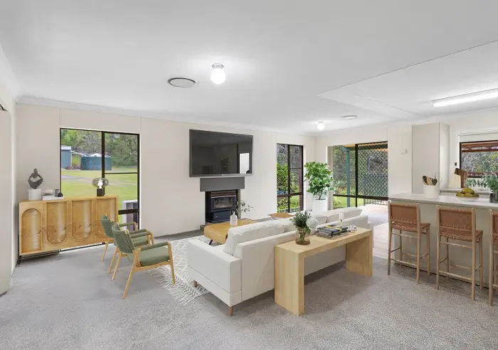 The acreage itself is a haven of privacy, framed by lush bushland and native wildlife, while a charming dam showcases within the grounds adds both character and lifestyle appeal — perhaps even home to a few yabbies waiting to be caught.